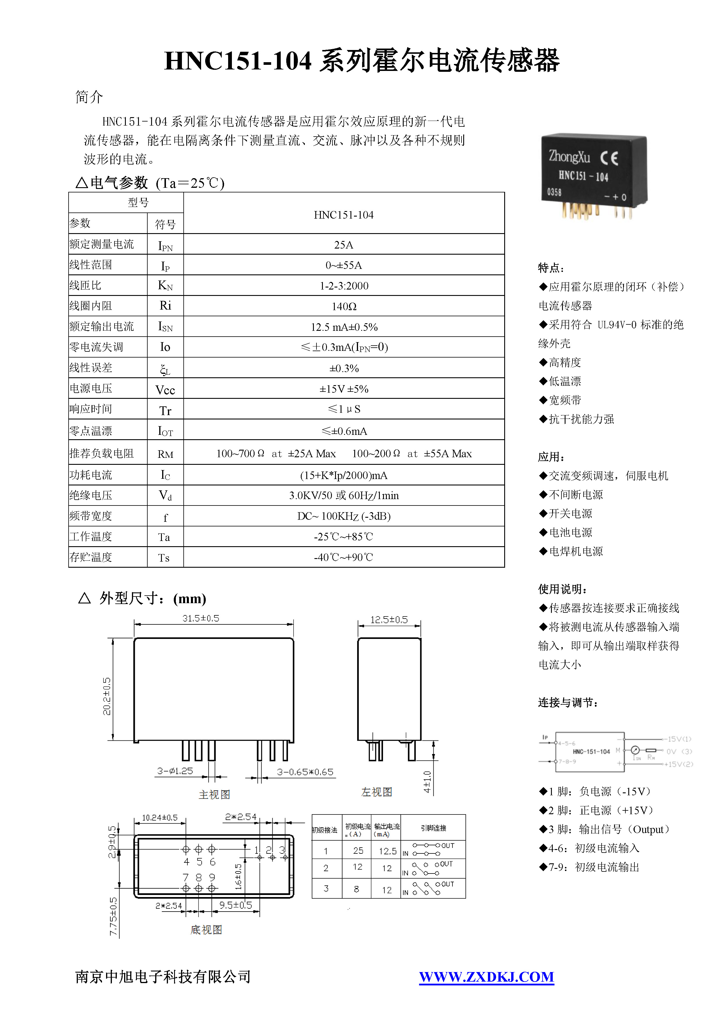 HNC151-104系列霍爾電流傳感器是應(yīng)用霍爾效應(yīng)原理的新一代電流傳感器,能在電隔離條件下測(cè)量直流、交流、脈沖以及各種不規(guī)則波形的電流。